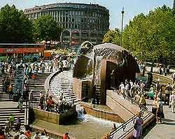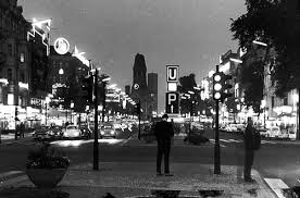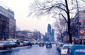 | Ku'Damm, the main street downtown, with its bombed-out church since World War II. |